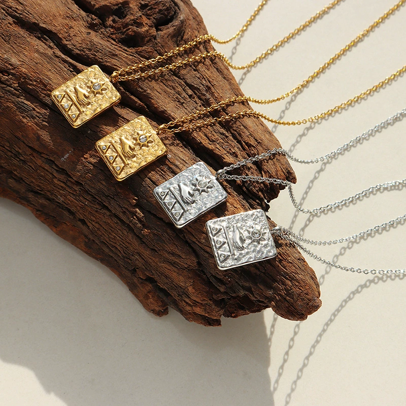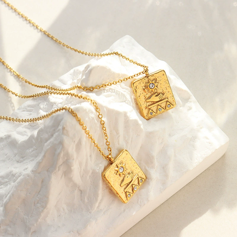 Crafted from durable titanium steel with 18K gold plating, this necklace is resistant to fading and tarnishing. The zircon stone adds a refined sparkle, enhancing its luxurious appearance without compromising everyday wearability.