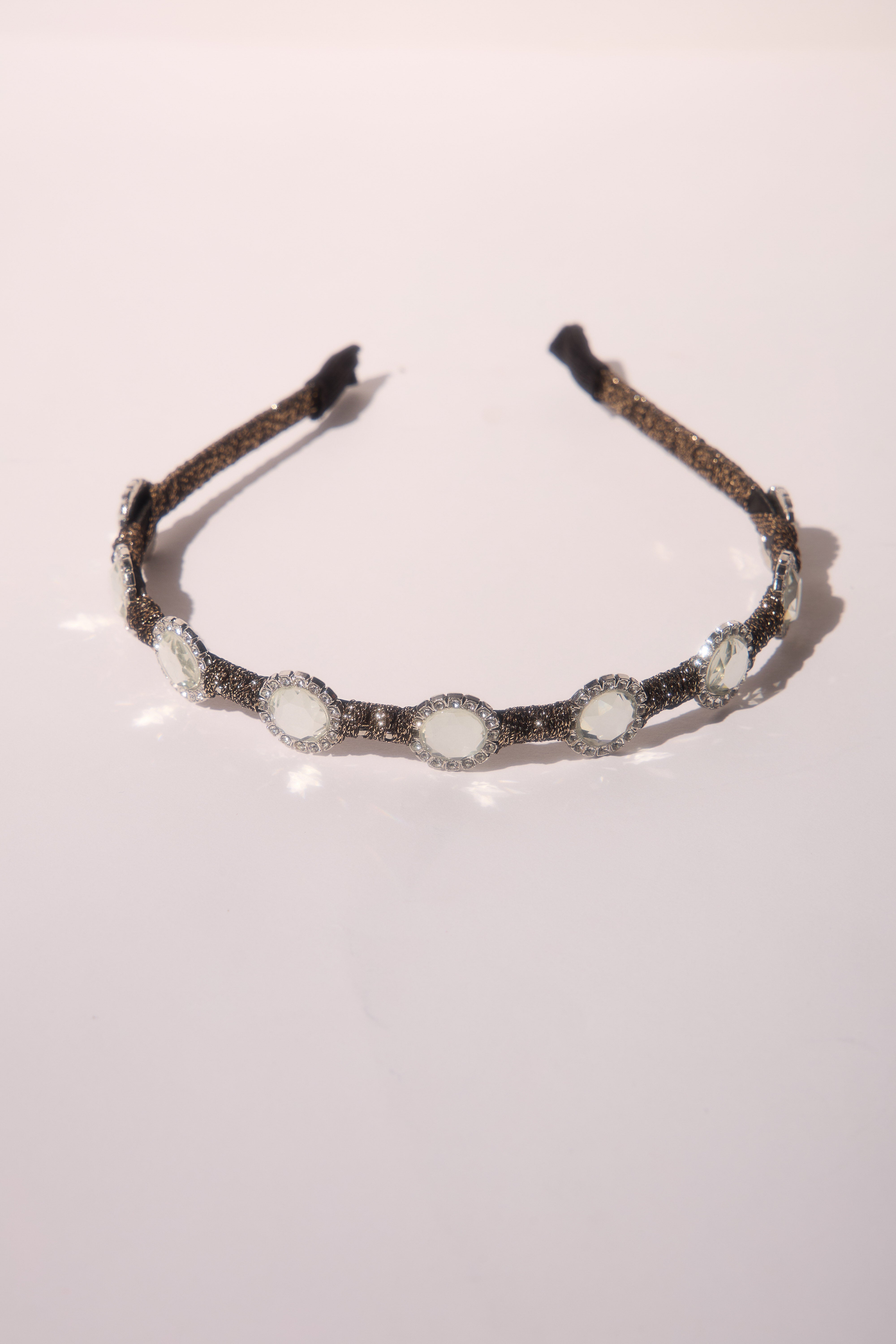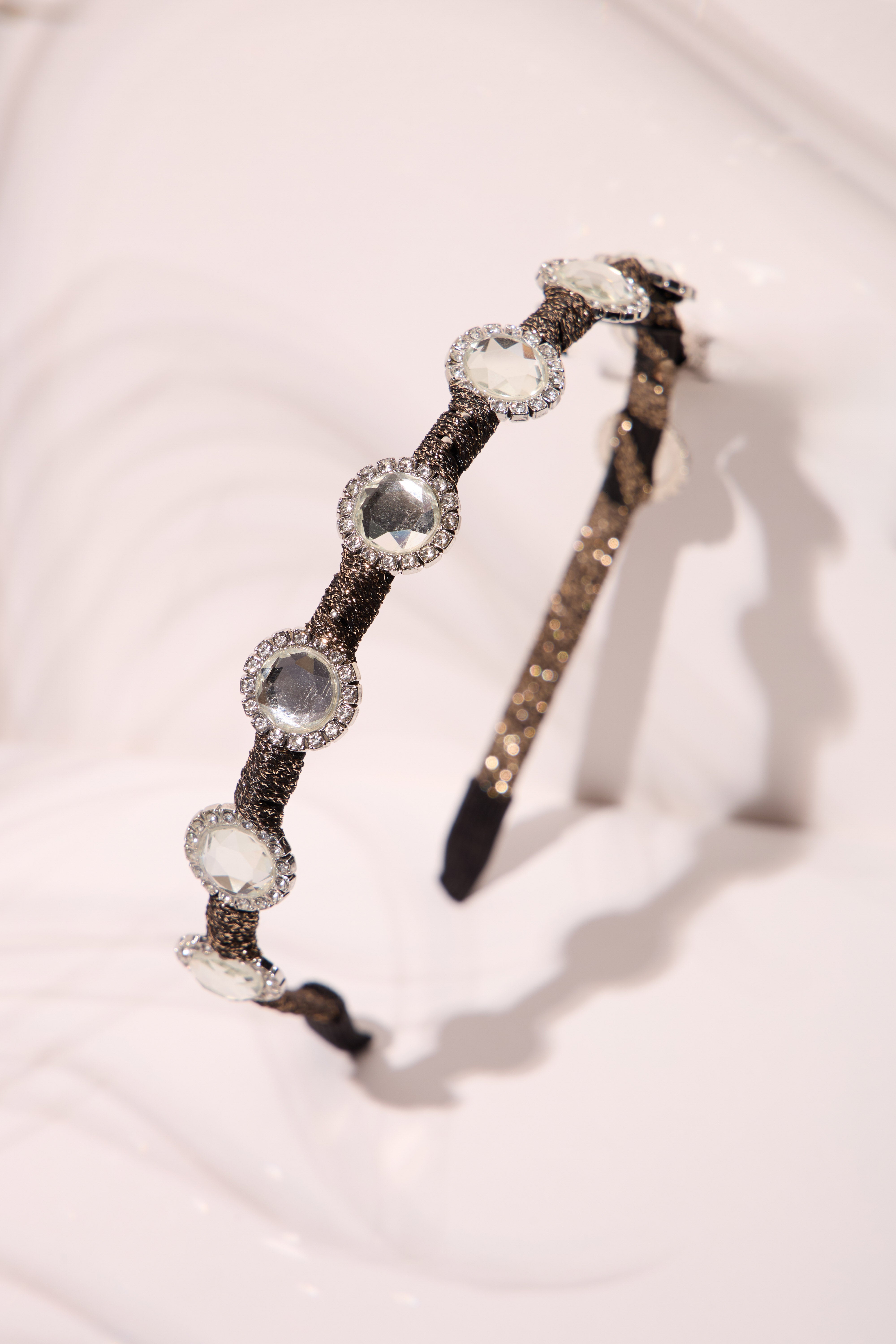 Sleek golden headband with mirror accents, adding a touch of modern glamour.