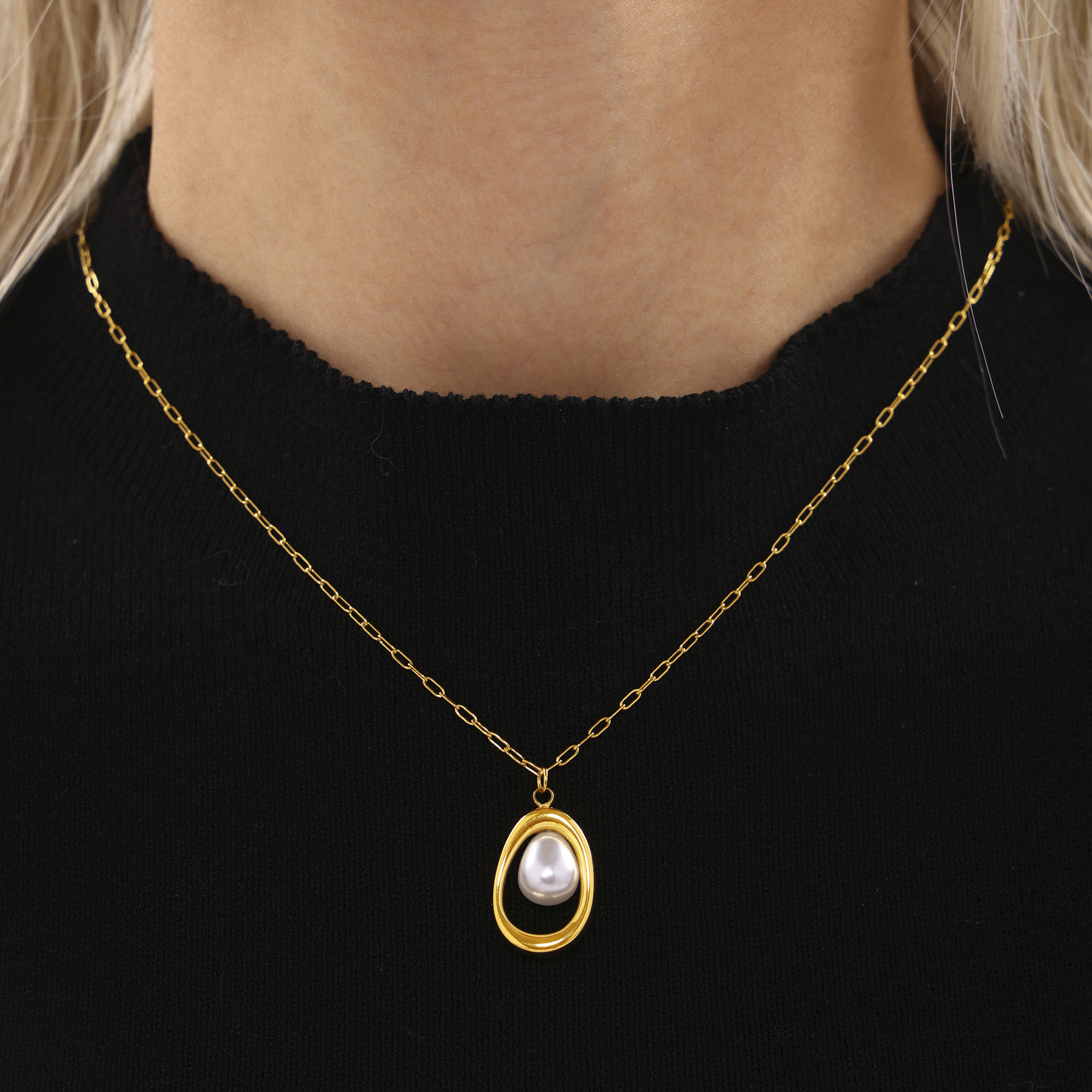 Crafted from stainless steel with real 18K gold plating, it is designed to maintain its shine and resist discoloration. The combination of metal and pearl creates a balanced, refined look.