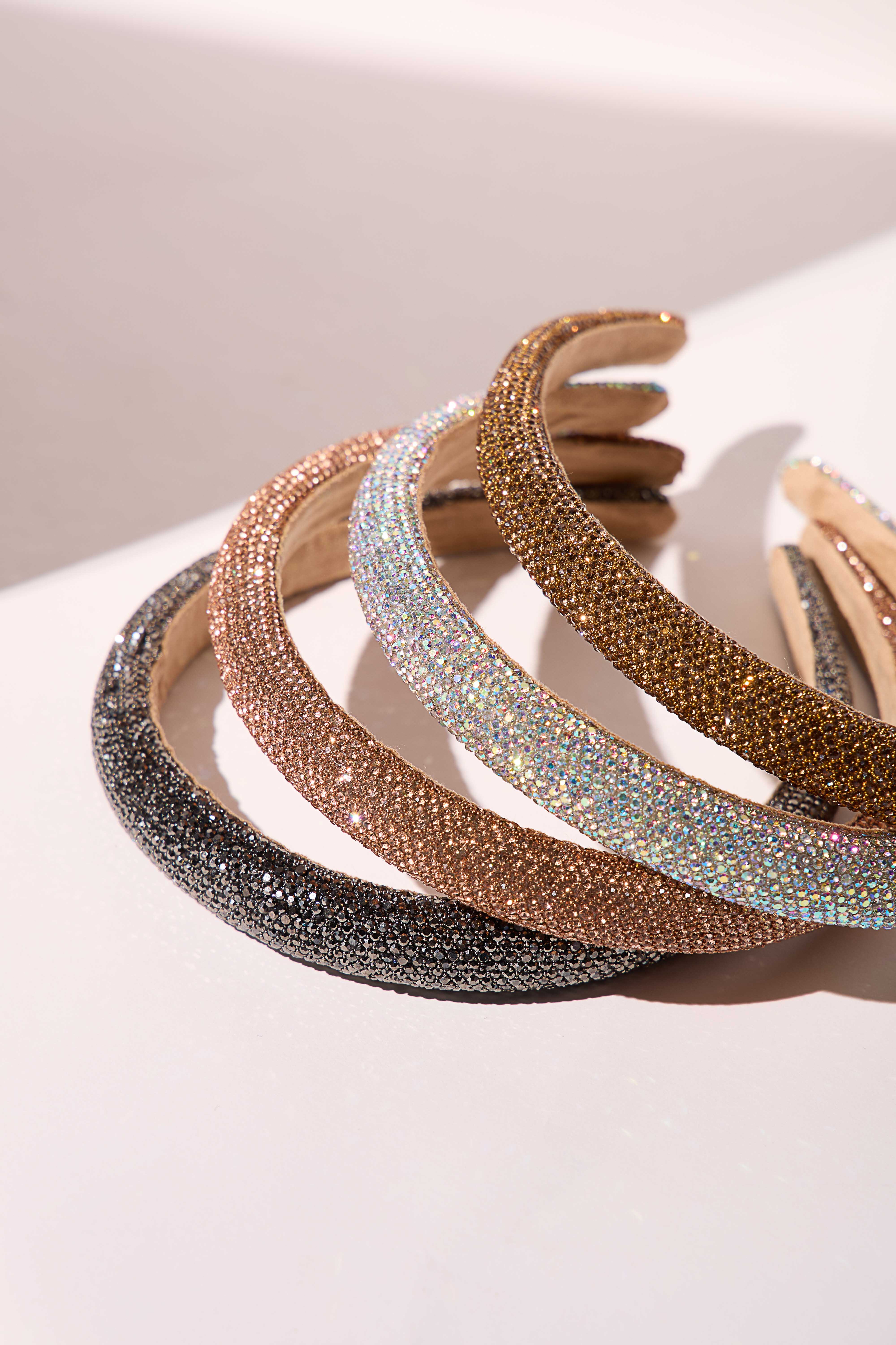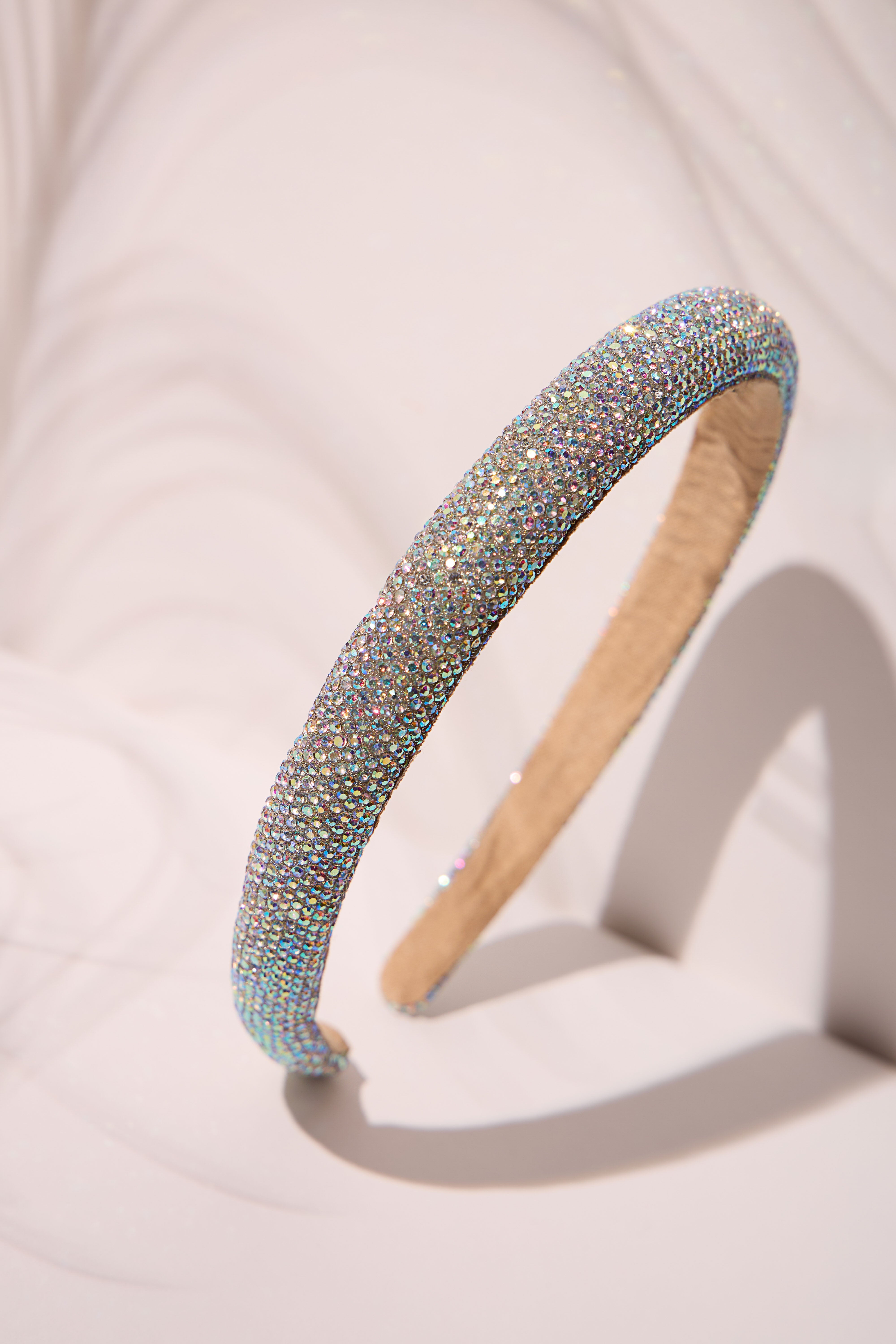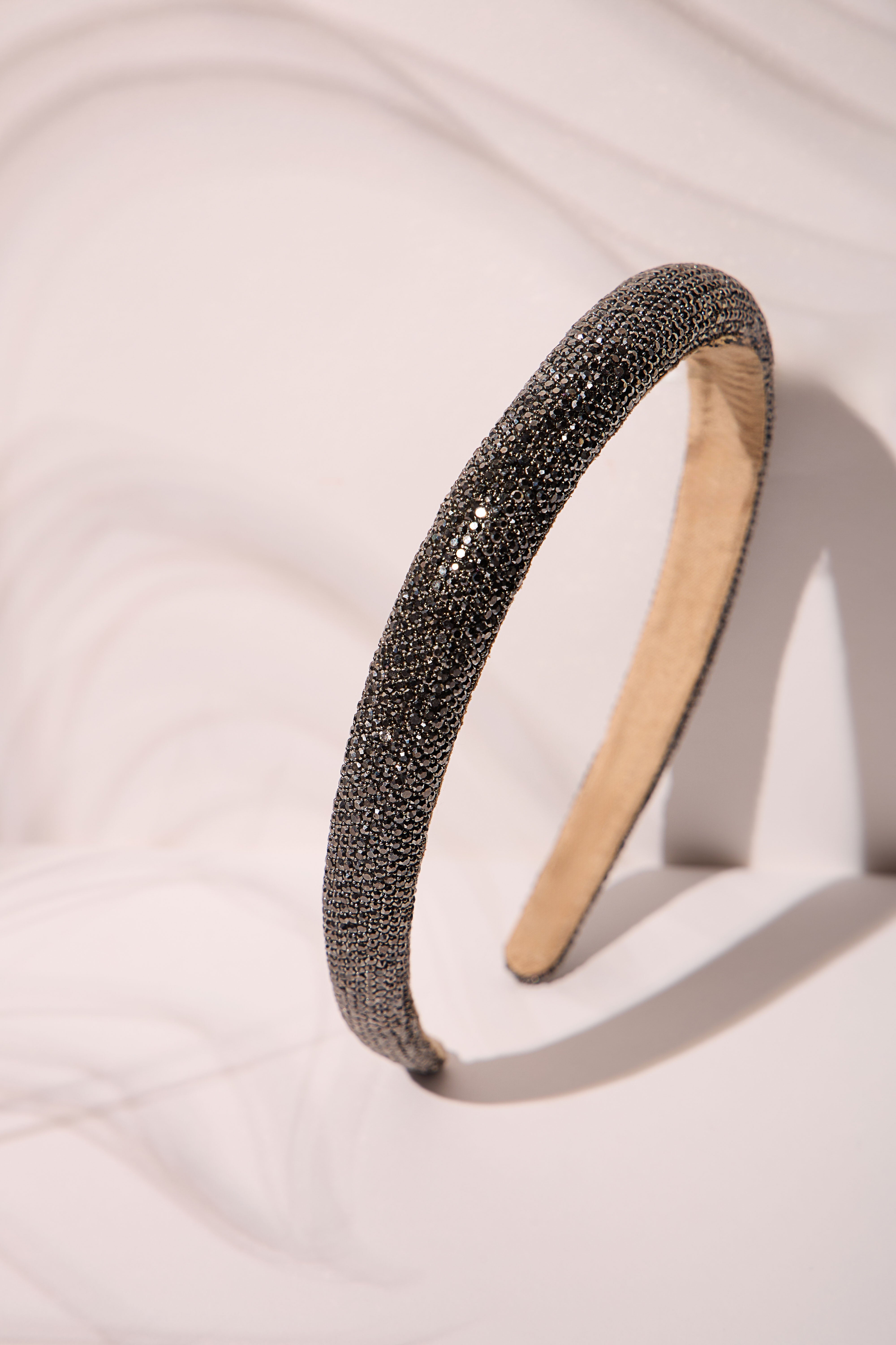 Stunning headband with sparkling rhinestones for a glamorous finish.